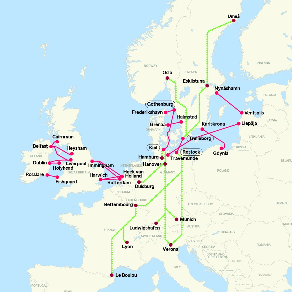 With access to one of the most extensive short sea networks and frequent departures, we link the intermodal networks across Europe with our services. These services have been designed to work in line with our sustainable shipping goals.